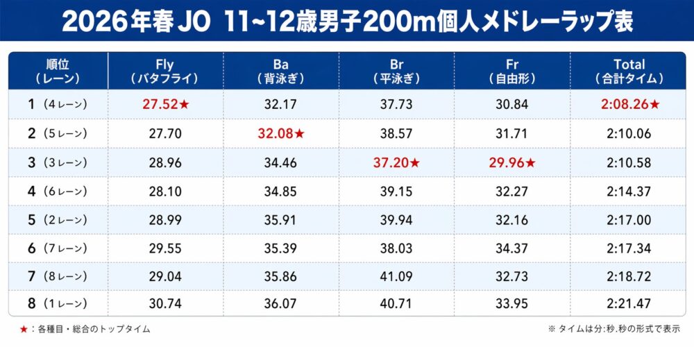 今回は11~12歳 男子200m個人メドレーを分析してみますね。