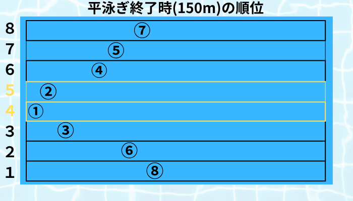 平泳ぎ終了時には全体的に大きな差が生まれています。