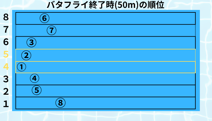 4レーンの選手はアンダーウォーターが上手いという印象です。