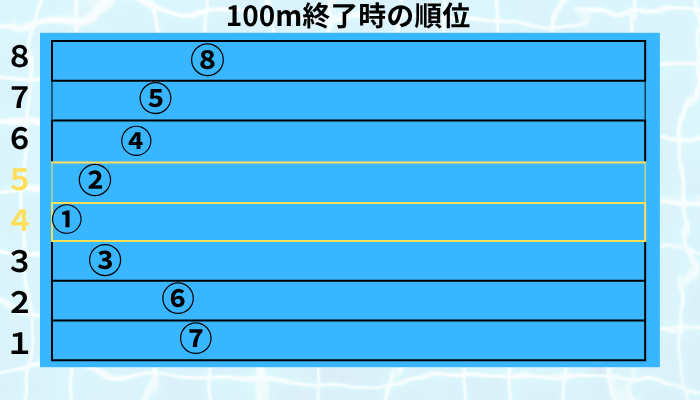 2位の5レーンの選手は前半勝負に行ったのではないでしょうか。