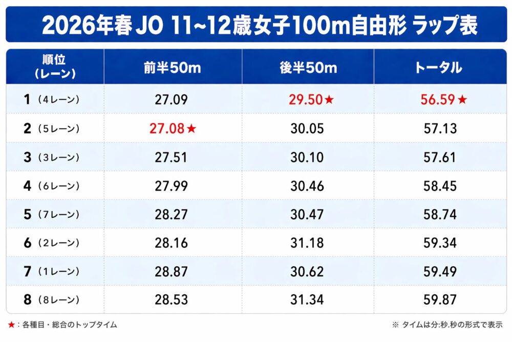 今回は11~12歳 女子100m自由形を分析してみますね。